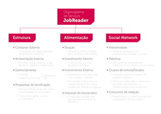 O documento discute a relação entre o ambiente de trabalho e a incentivação à leitura, destacando pesquisas sobre hobbies e desafios enfrentados por profissionais criativos. Propõe um serviço de consultoria para implementar bibliotecas nas empresas, promovendo a leitura durante o expediente, visando melhorar a produtividade e o ambiente social. Também aborda a importância da literatura no aprimoramento profissional dos funcionários, especialmente na área de marketing.
