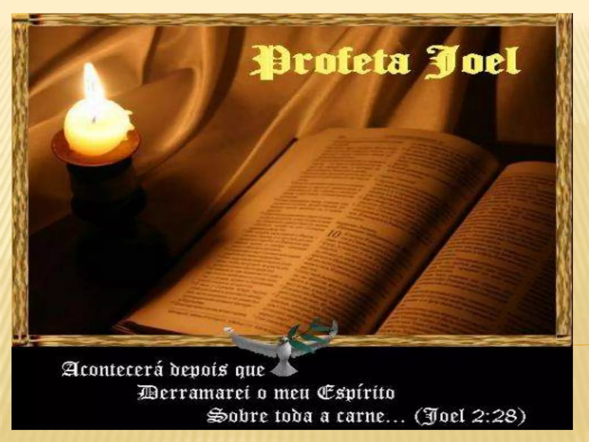 O documento discute o livro de Joel, explicando seu contexto histórico e estrutura, e como ele descreve o derramamento do Espírito Santo sobre a humanidade e os sinais dos últimos dias antes do retorno de Cristo.