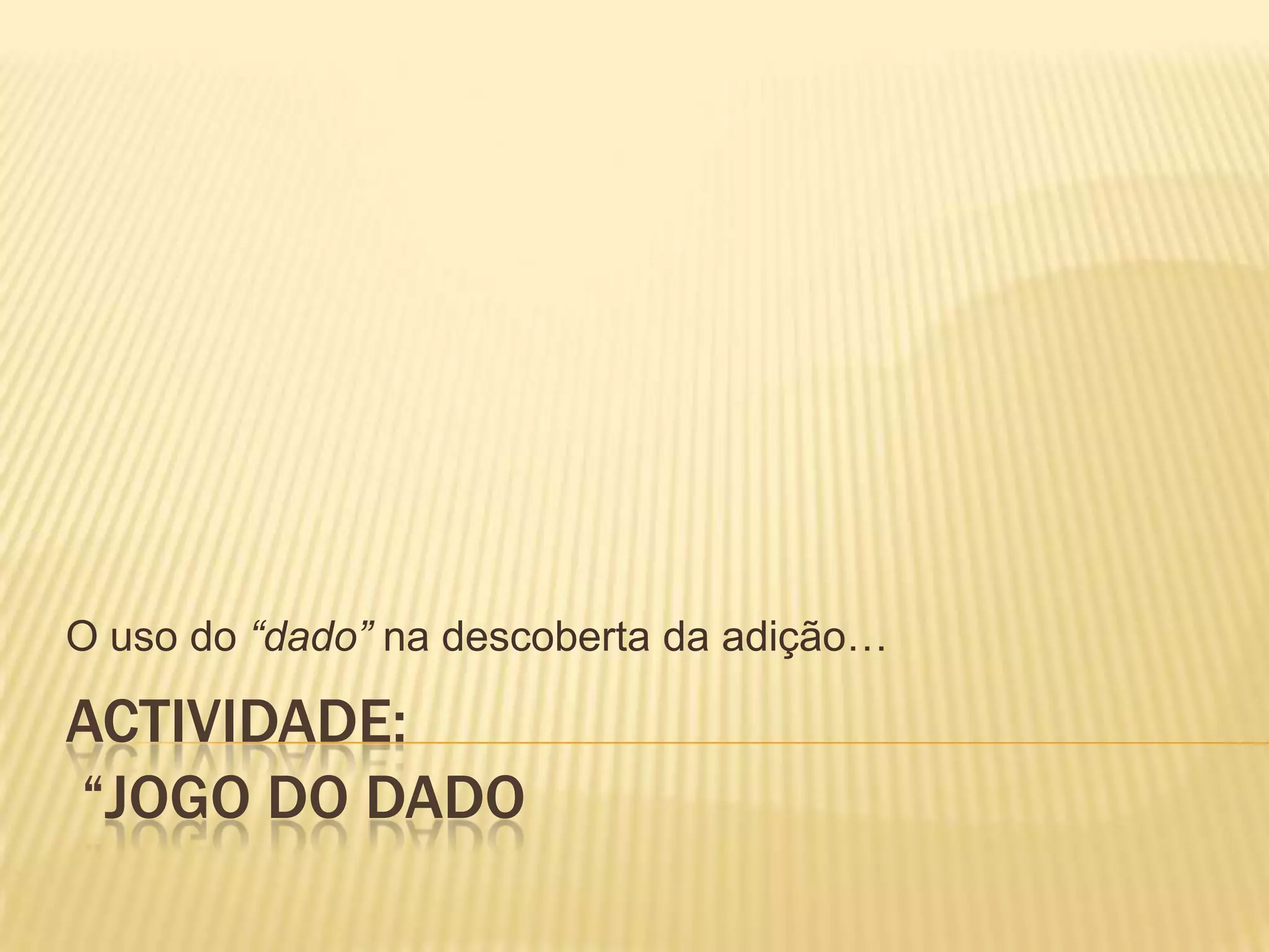 O documento descreve um jogo com dados para ensinar adição. O jogo envolve lançar dados e somar os números obtidos para descobrir o resultado total.