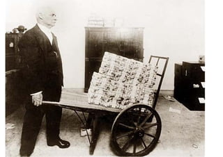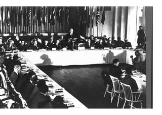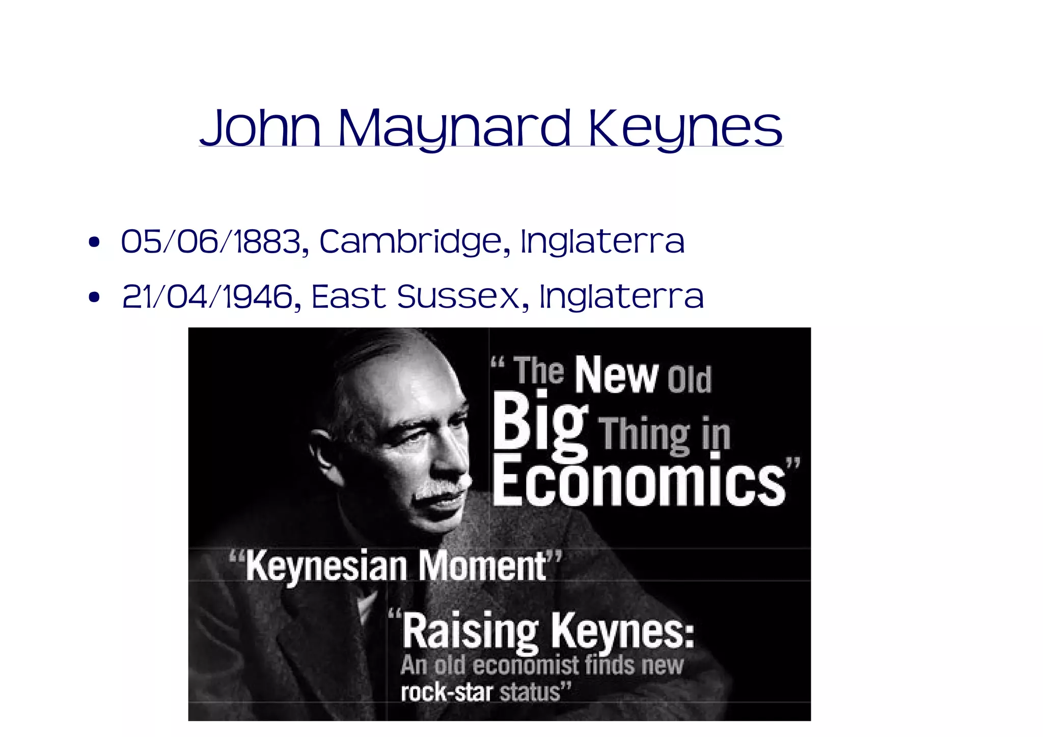 O documento discute a vida e obra do economista John Maynard Keynes. Keynes criticou os termos do Tratado de Versalhes após a Primeira Guerra Mundial e previu que eles levariam à ascensão do nazismo na Alemanha. Ele também ajudou a criar as instituições do sistema monetário internacional do pós-guerra, como o Fundo Monetário Internacional e o Banco Mundial. Sua teoria econômica keynesiana ganhou proeminência durante a Grande Depressão e influenciou as políticas econômicas do New