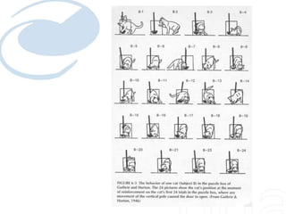 O documento descreve os principais conceitos e experimentos do behaviorismo de acordo com Edwin Guthrie e John Watson. Guthrie desenvolveu a lei da aprendizagem em uma única tentativa com um experimento envolvendo um gato. Watson aplicou o behaviorismo para explicar a aquisição de hábitos, atitudes e emoções humanas através do condicionamento clássico e defendeu que a mente humana é como uma tabula rasa sobre a qual as experiências escrevem.