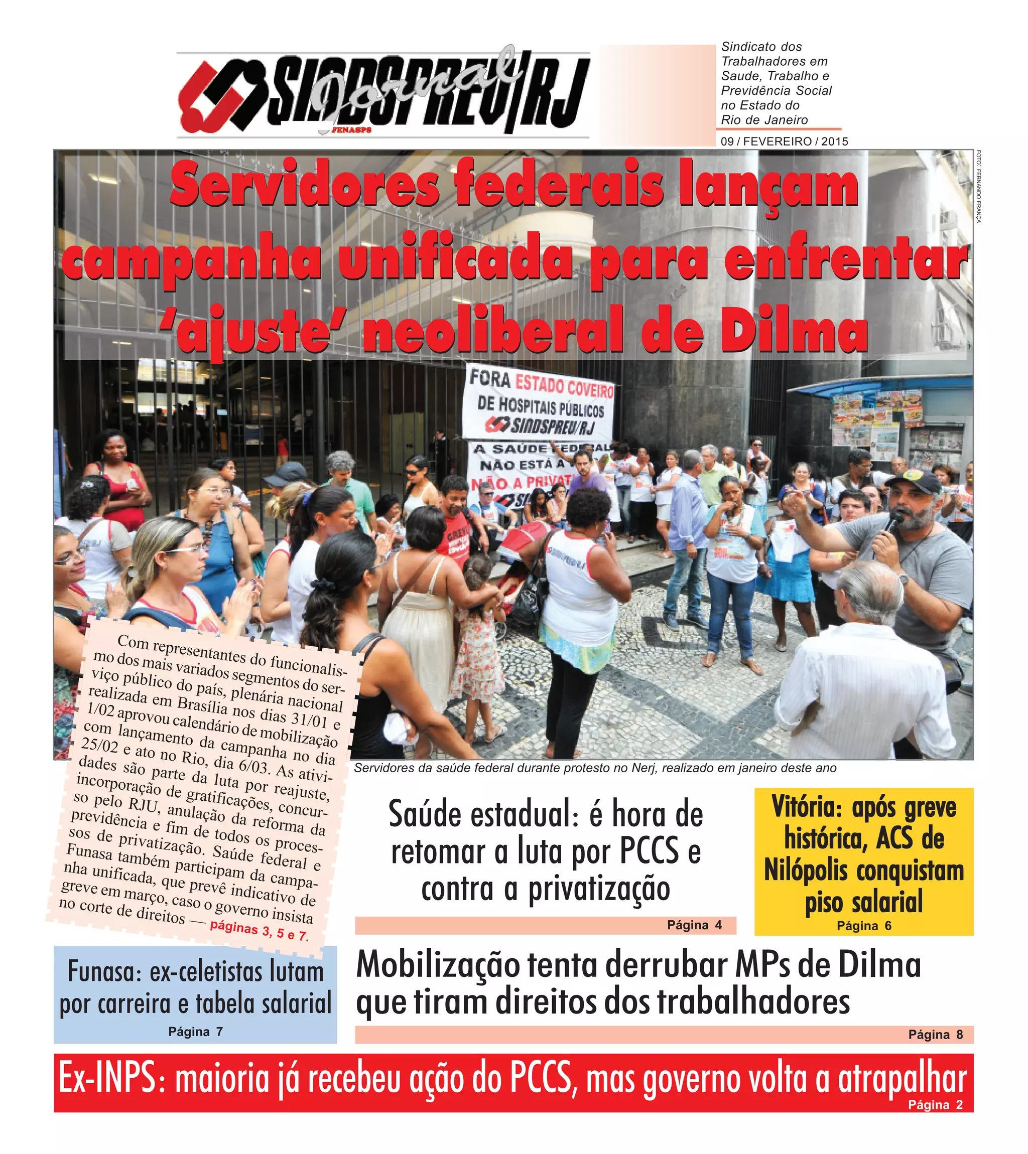 1) Servidores federais de diversas categorias aprovaram uma campanha salarial conjunta para 2015 com o objetivo de pressionar o governo federal por reajustes salariais, incorporação de gratificações e defesa de direitos trabalhistas e previdenciários.