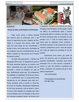 Este documento resume uma edição de um jornal escolar. Contém notícias sobre: