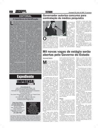 O documento resume as principais notícias de um jornal local de Guarapari, ES. Entre as matérias, destaca-se a inauguração de uma nova sede do Corpo de Bombeiros de Guarapari, o anúncio de repasses de verbas para projetos de educação ambiental em Linhares, e a abertura de mil novas vagas de estágio pelo governo do estado.