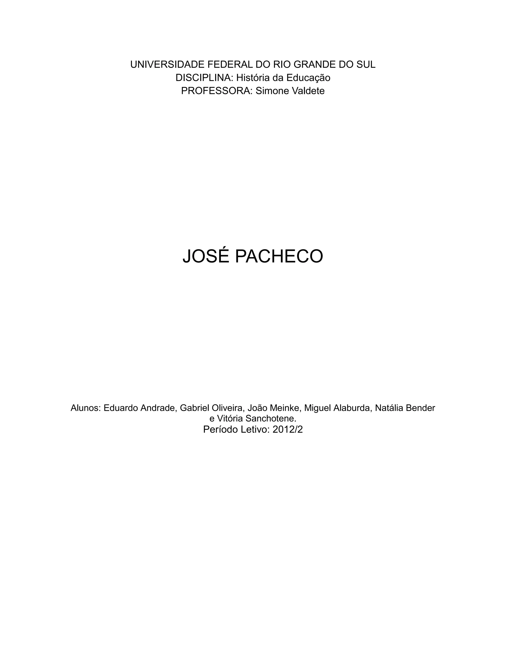 (1) O documento descreve a biografia e carreira do educador português José Pacheco, idealizador da Escola da Ponte. (2) A Escola da Ponte se notabilizou por seu projeto educativo inovador baseado na autonomia dos estudantes, sem seriação ou ciclos. (3) Na Escola da Ponte, os alunos definem suas áreas de interesse e desenvolvem projetos de pesquisa, após passarem por um caminho de múltiplas aprendizagens.