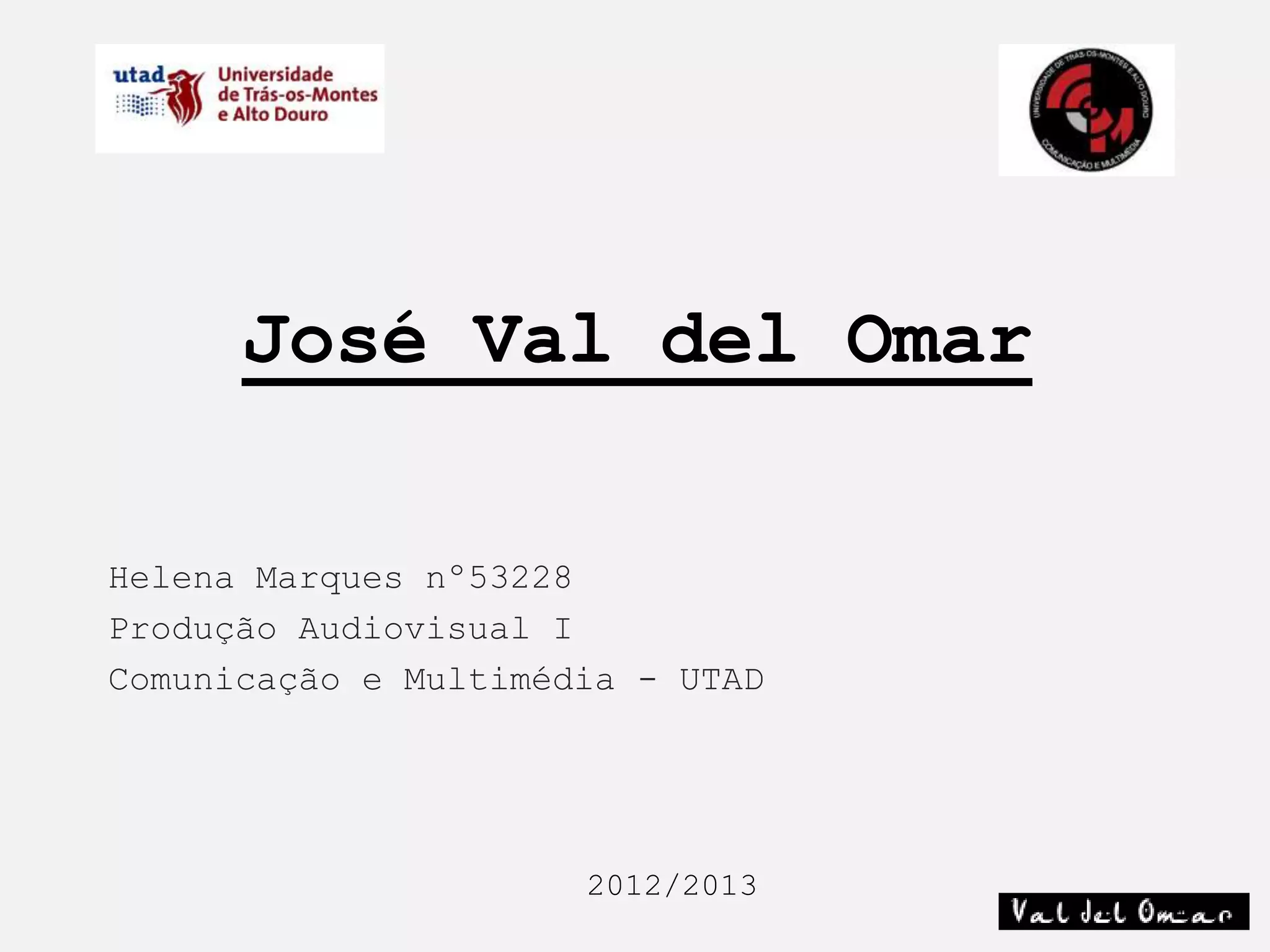 José Val del Omar foi um cineasta espanhol que desenvolveu novas técnicas fílmicas e de áudio. Ele inventou a "Tactile-Vision" para dar profundidade à imagem e a "Diafonia" para melhorar o som estéreo. Val del Omar dedicou sua vida a tornar o cinema mais realista através de seu projeto laboratorial chamado PLAT.