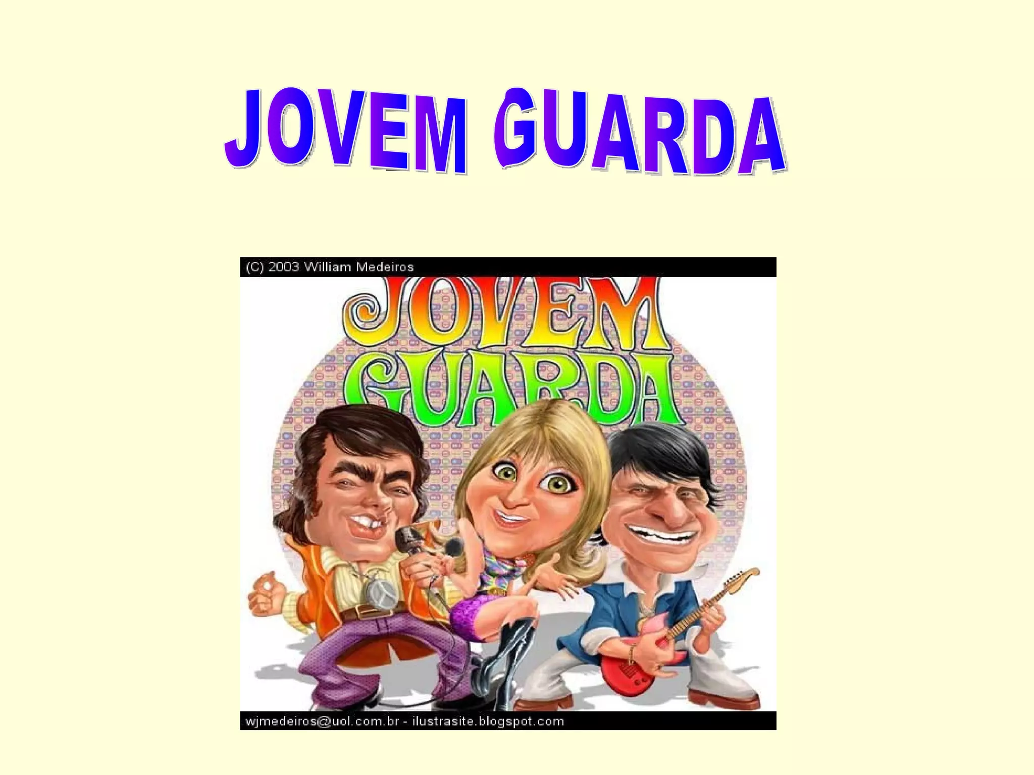 O documento descreve o movimento Jovem Guarda no Brasil nos anos 1960, incluindo seu surgimento no programa de TV de mesmo nome em 1965 e seu estilo musical que misturava rock, soul e psicodelia com influências brasileiras. Detalha também os principais artistas e músicas do período.