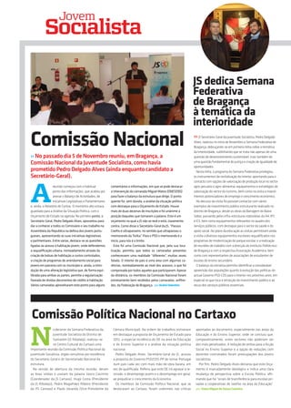 A Semana Federativa da Juventude Socialista percorreu o Distrito de Santarém entre 17 e 23 de Outubro. O programa incluiu visitas a 19 concelhos, debates com autarcas e militantes, e uma reunião da Comissão Política Nacional em Cartaxo para discutir o Orçamento do Estado.