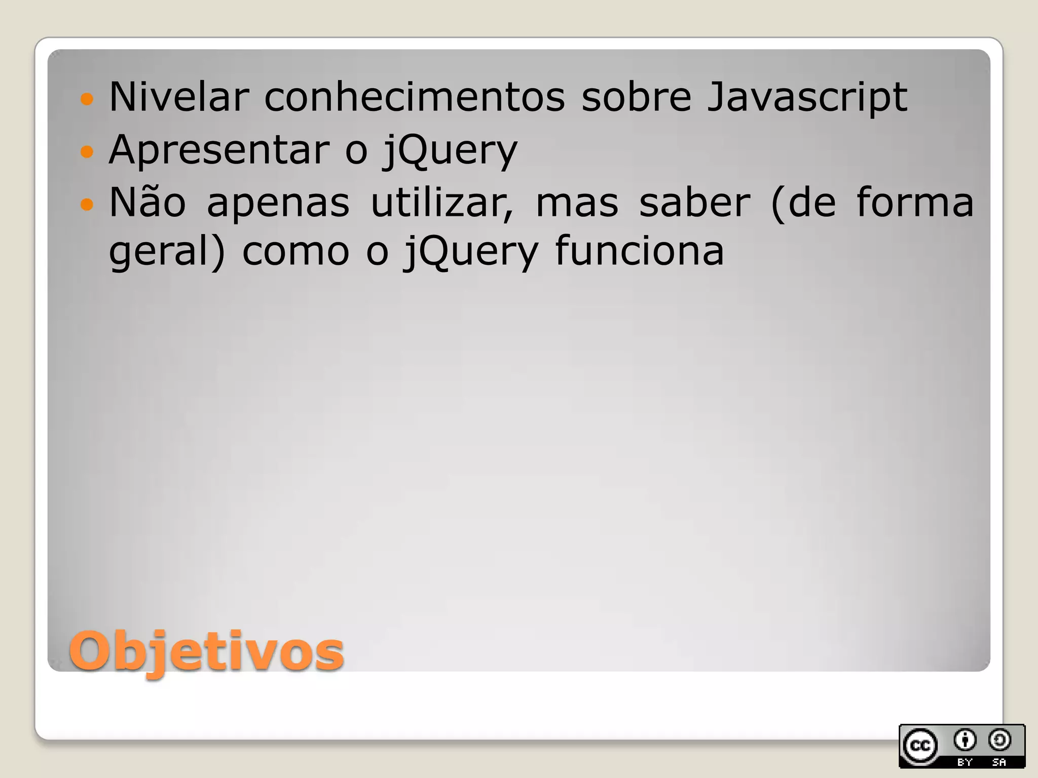 O documento apresenta uma introdução ao jQuery, cobrindo os seguintes tópicos: 1) Apresenta os objetivos do curso de introdução ao jQuery, como nivelar conhecimentos sobre JavaScript e mostrar como o jQuery funciona; 2) Discutem conceitos básicos de JavaScript como escopo, tipos, orientação a objetos e eventos; 3) Explica as vantagens do jQuery, como simplificar o trabalho com JavaScript, e como ele funciona; 4) Mostra exemplos básicos de como utilizar seletores e métodos jQuery.