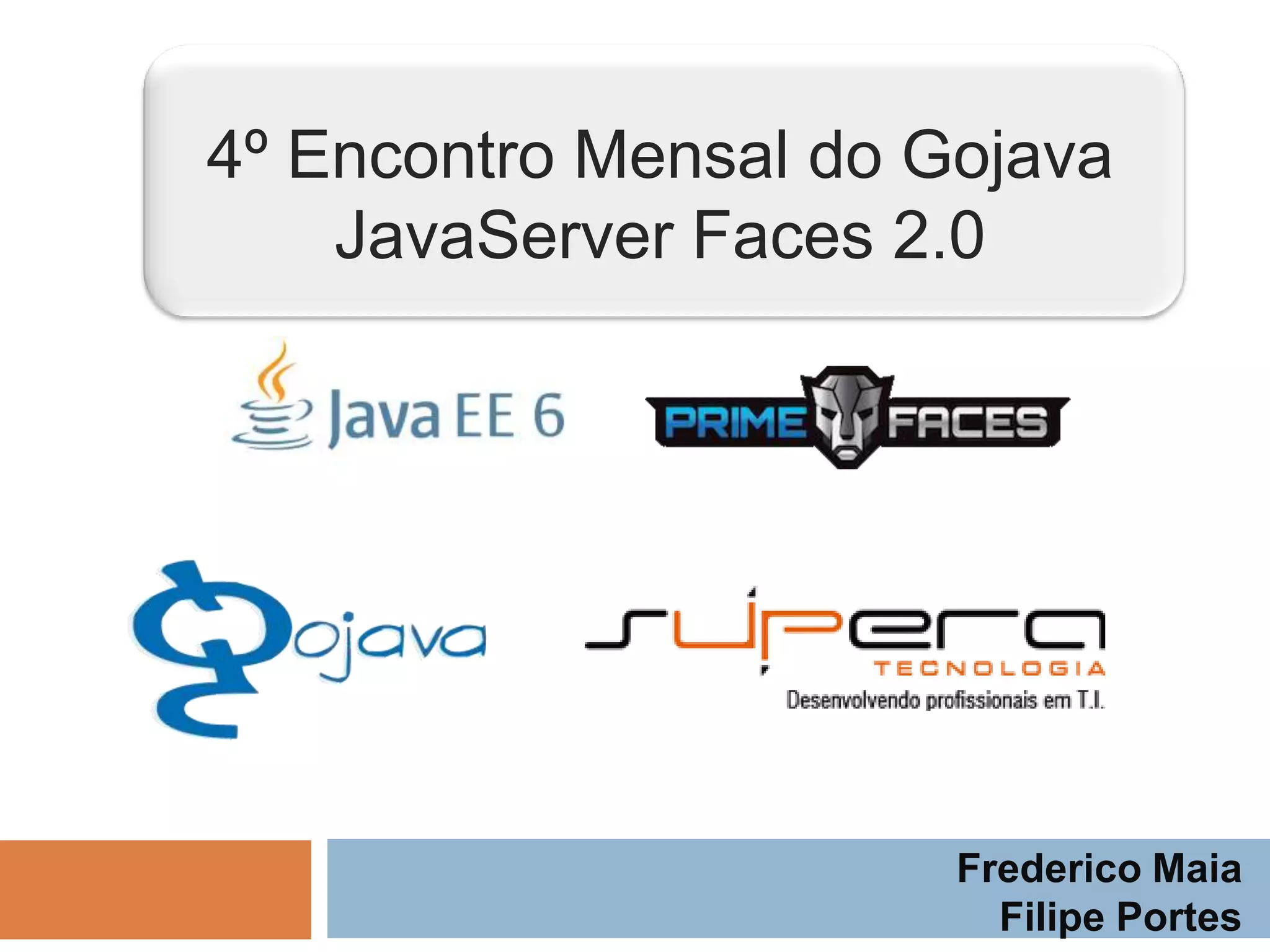 O documento resume o 4o Encontro Mensal do Gojava sobre JavaServer Faces 2.0. Foi apresentado por Filipe Portes e Frederico Maia e abordou as principais novidades da especificação JSF 2.0 como suporte nativo a Ajax, uso de anotações no lugar de configurações XML, e a utilização de componentes Primefaces para construção de interfaces ricas.
