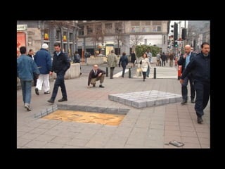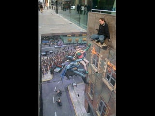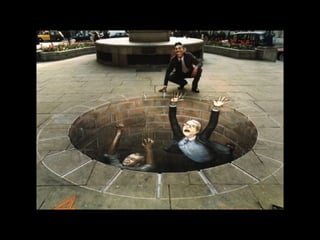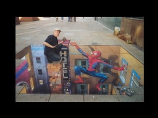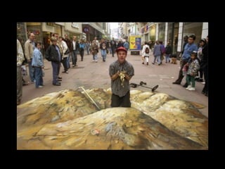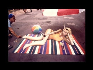 Julian Beever é um artista inglês famoso por criar desenhos nas calçadas que parecem tridimensionais quando vistos de determinados ângulos, iludindo o observador. Seus trabalhos em 3D são feitos nas ruas da Inglaterra, França, Alemanha, Estados Unidos, Austrália e Bélgica.