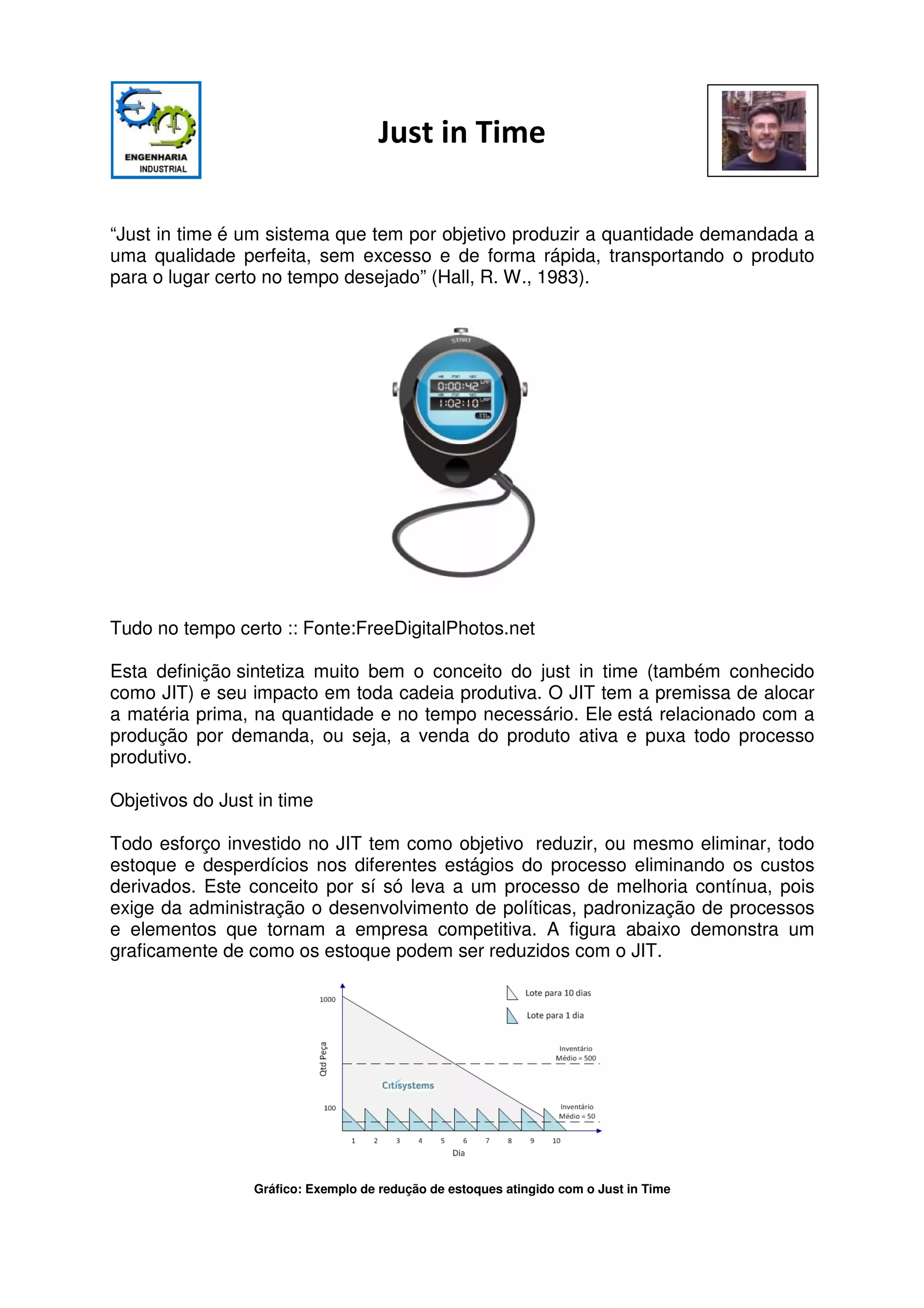 Just in Time (JIT) é um sistema que visa produzir a quantidade demandada de produtos na qualidade perfeita e sem excessos, promovendo a eficiência na cadeia produtiva ao reduzir estoques e desperdícios. O JIT exige um comprometimento significativo da administração e condições adequadas para sua implementação, como a minimização de problemas ocultos que estoques elevados podem encobrir. Este conceito é fundamental na manufatura enxuta e opera de forma complementar com ferramentas como o kanban para otimizar processos produtivos.