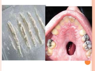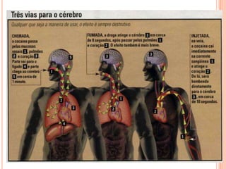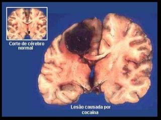 O documento discute os aspectos relacionados ao uso de drogas por jovens. Ele define o que são drogas e classifica-as em lícitas e ilícitas. Também aborda os aspectos legais do uso, as finalidades, vício e adição, principais drogas recreativas como álcool, tabaco, maconha, cocaína e ecstasy e seus efeitos físicos e psicológicos.