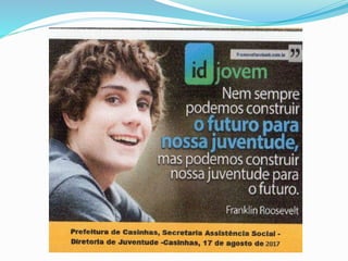 O documento descreve as atividades realizadas pela Diretoria de Juventude entre janeiro e agosto de 2017, incluindo encontros com jovens, cursos profissionalizantes, apresentações do programa ID Jovem e participação em eventos municipais e estaduais sobre juventude.