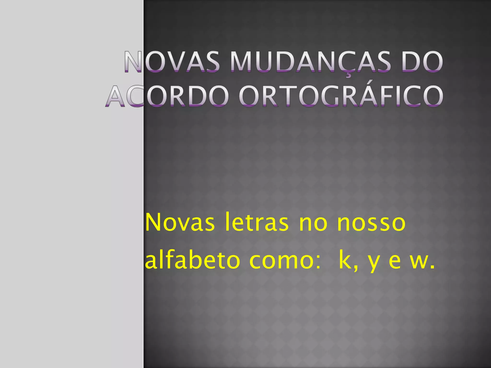 O documento discute a adição das letras k, y e w no alfabeto português de acordo com o novo acordo ortográfico. Ele fornece exemplos de palavras com k e explica que a ordem correta das letras no alfabeto português agora inclui k, w e y.
