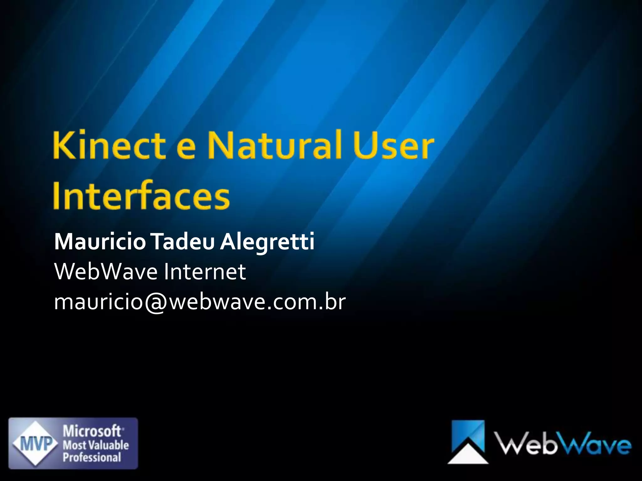 O documento discute a interface natural do usuário da Kinect da Microsoft. Ele começa com uma breve introdução sobre o autor e sobre interfaces naturais de usuário. Em seguida, discute a evolução da Kinect da Microsoft Research para uso doméstico e como ela pode melhorar a experiência do usuário ao permitir controles sem toque. Finalmente, aborda o desenvolvimento da Kinect, incluindo drivers, frameworks, middleware e SDK oficial.