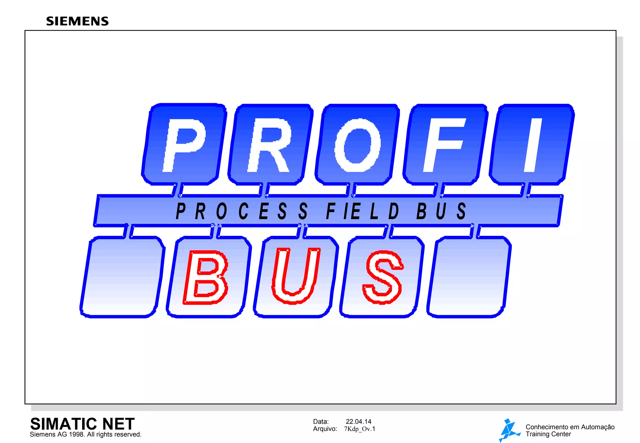 O documento descreve o sistema de comunicação fieldbus PROFIBUS, incluindo suas características, aplicações e configurações. O PROFIBUS suporta comunicação em baixa e média velocidade usando cabos de cobre ou fibra ótica, com até 127 nós e distâncias de até 9 km com cobre e 90 km com fibra ótica. Ele oferece comunicação cíclica mestre-escravo e multi-mestre para aplicações de controle e automação industrial.
