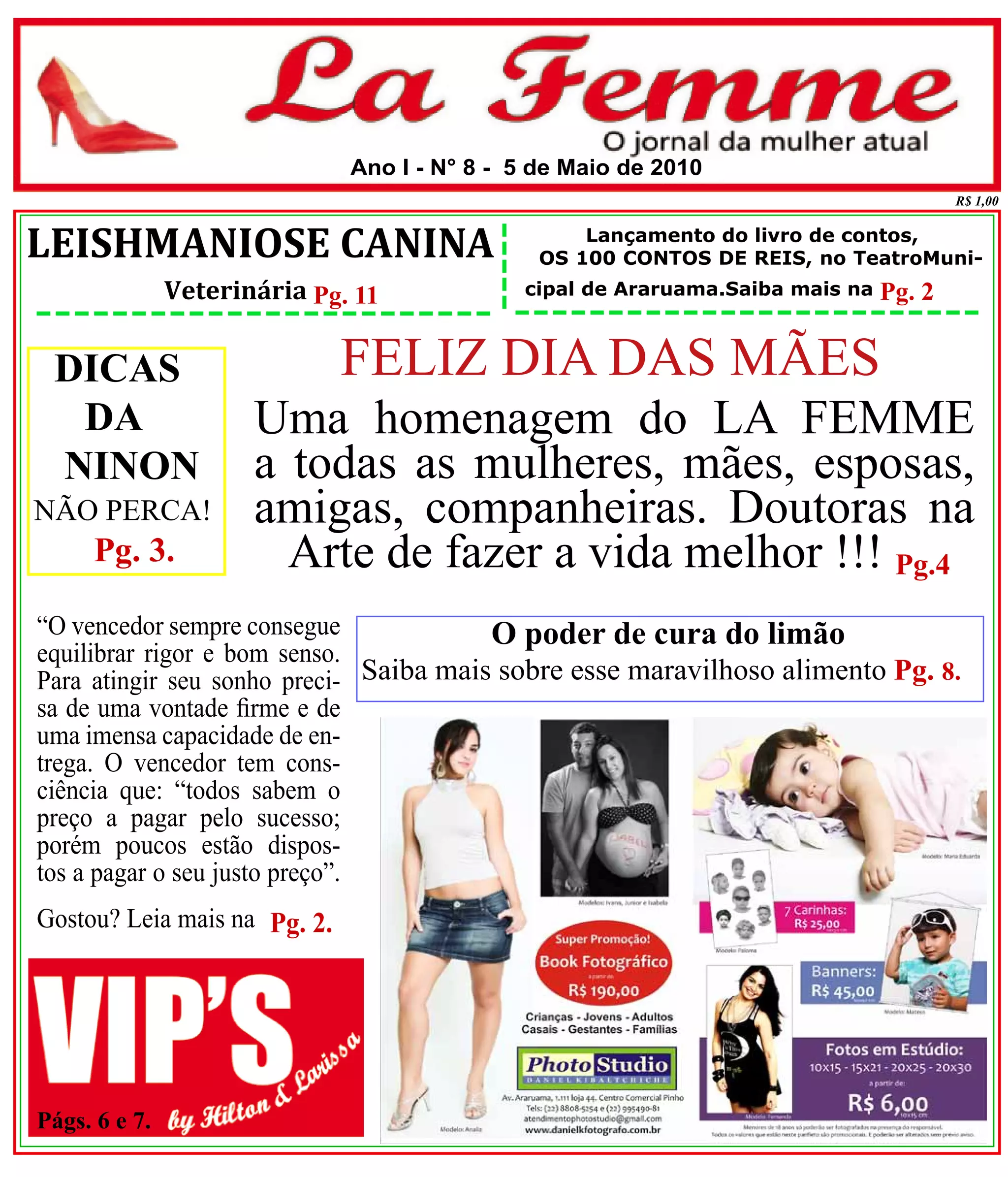 2) Contém várias seções como notícias, cartas dos leitores, dicas de saúde e lazer, e humor.