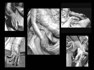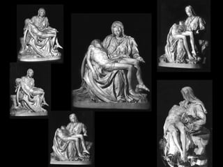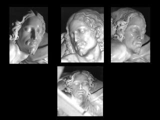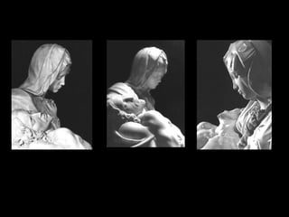 O documento descreve a escultura Pietà de Miguel Ângelo, incluindo fotos noturnas feitas por Robert Hupka e a reação profunda que teve ao contemplá-la. Também menciona que Miguel Ângelo esculpiu o rosto da Virgem Maria tão jovem quanto o de Jesus por acreditar que os apaixonados por Deus nunca envelhecem.