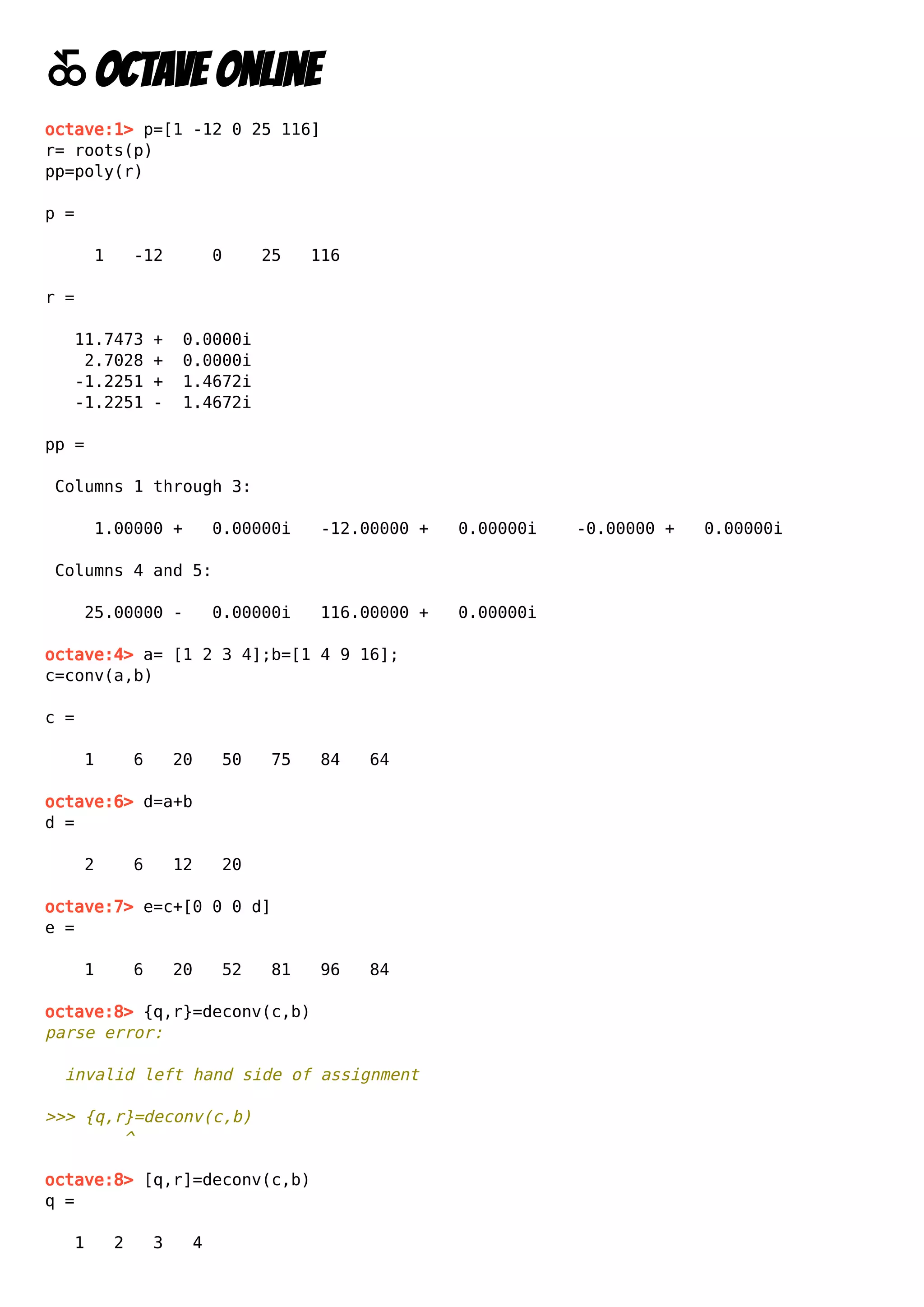 Lab 1 Octave Online