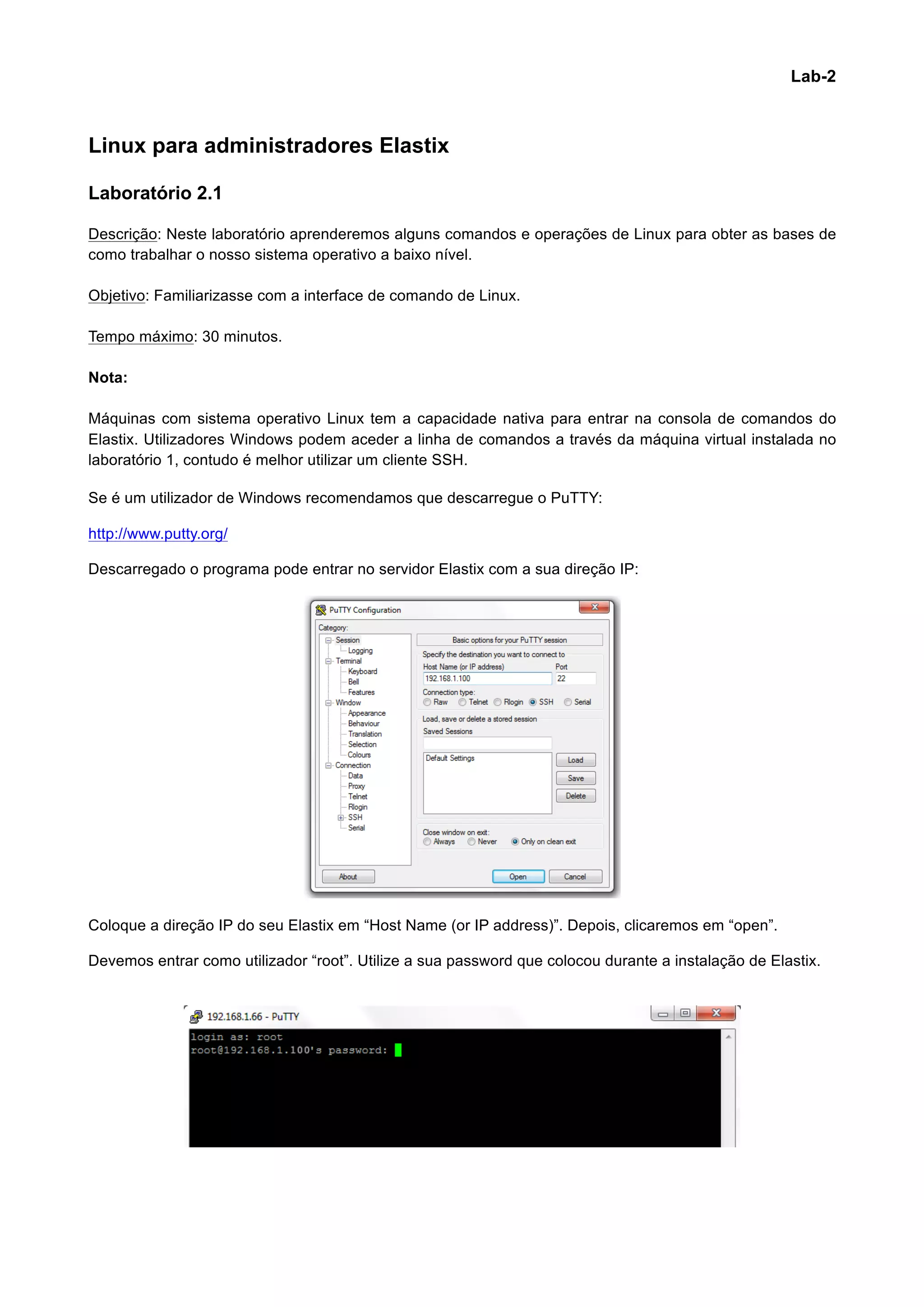 laboratório 1, contudo é melhor utilizar um cliente SSH.