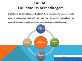 O LABDAP é um jogo educativo para Android que consolida aprendizagens de forma lúdica através do mobile learning. O jogo possui dez níveis de dificuldade com perguntas e permite aprendizagem online através de wi-fi e a plataforma Moodle. O objetivo é motivar os alunos e investigar novas aplicações educativas móveis.