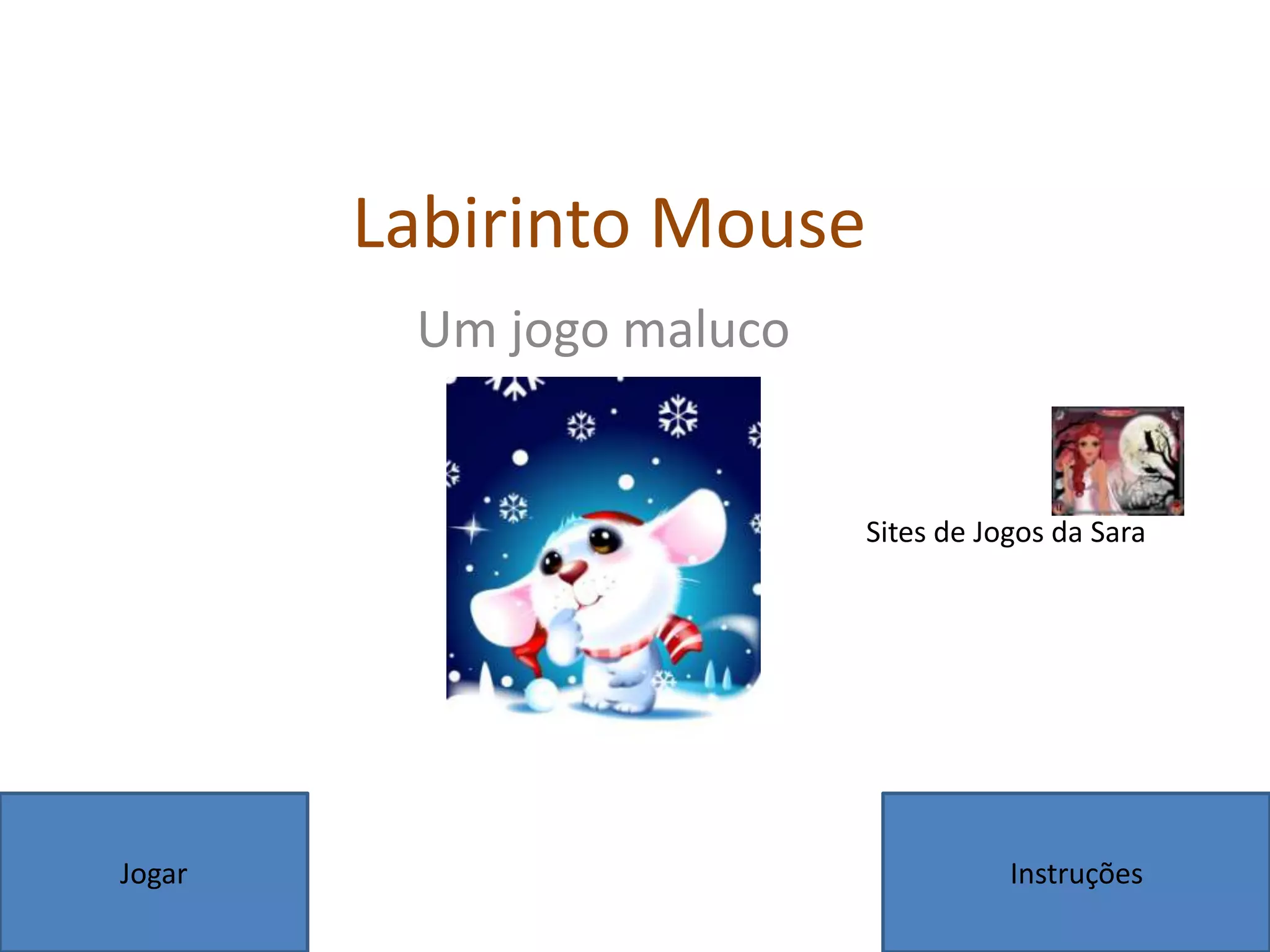 Este documento fornece instruções para um jogo chamado "Labirinto Mouse" criado por Sara, no qual o jogador deve mover o mouse dentro de retângulos para completar 3 níveis sem sair deles. As instruções explicam o objetivo do jogo e encorajam o jogador a tentar novamente se perder.