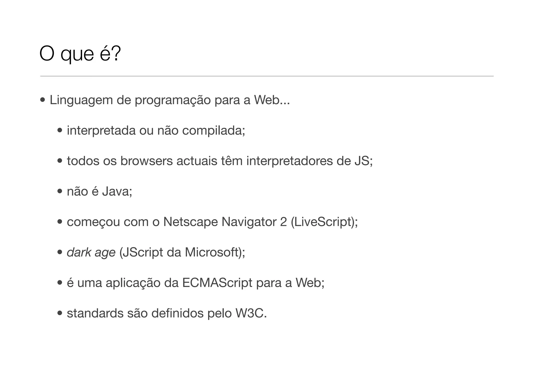 1) JavaScript é uma linguagem de programação interpretada utilizada para adicionar interatividade às páginas web.