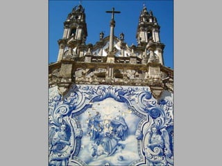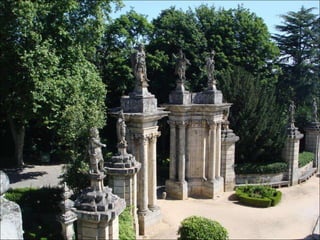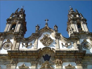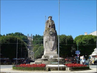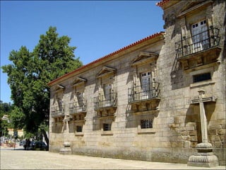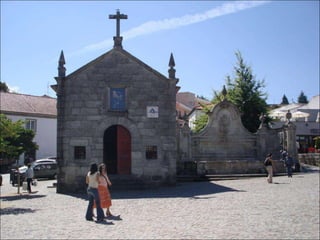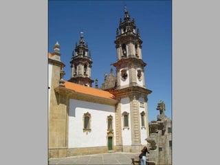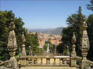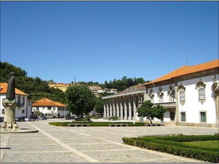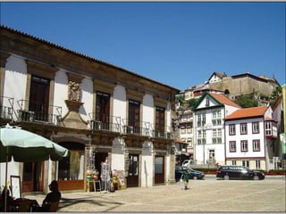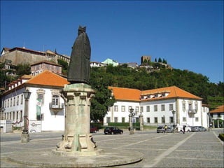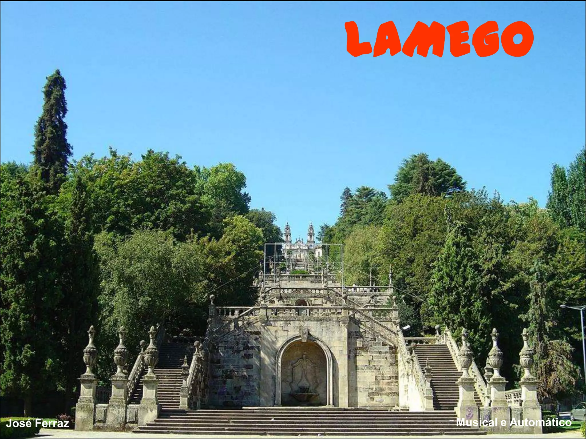O documento apresenta pontos turísticos da cidade de Lamego, Portugal, incluindo o Santuário de Nossa Senhora dos Remédios, a Sé Catedral e o Castelo de Lamego, separados por linhas. O rio Douro também é mencionado.