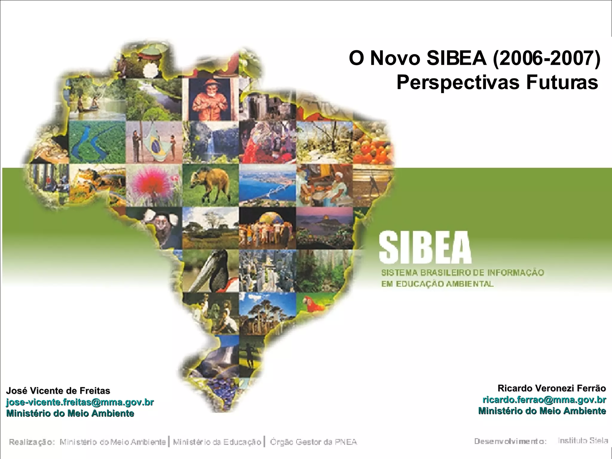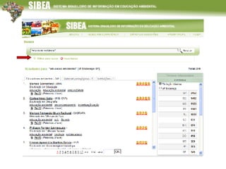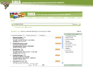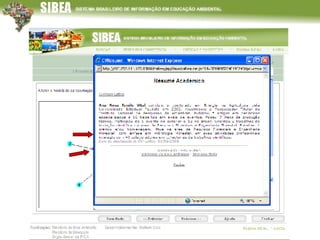 O documento descreve o Sistema de Informação e Monitoramento da Educação Ambiental (SIBEA), que fornece informações sobre educadores ambientais, instituições, pesquisas e materiais pedagógicos. O SIBEA oferece ambientes online para educadores, instituições e gestores acessarem dados e se conectarem em redes. Futuramente, o SIBEA pretende expandir suas bases de dados e realizar análises temáticas para apoiar a formulação de políticas públicas.