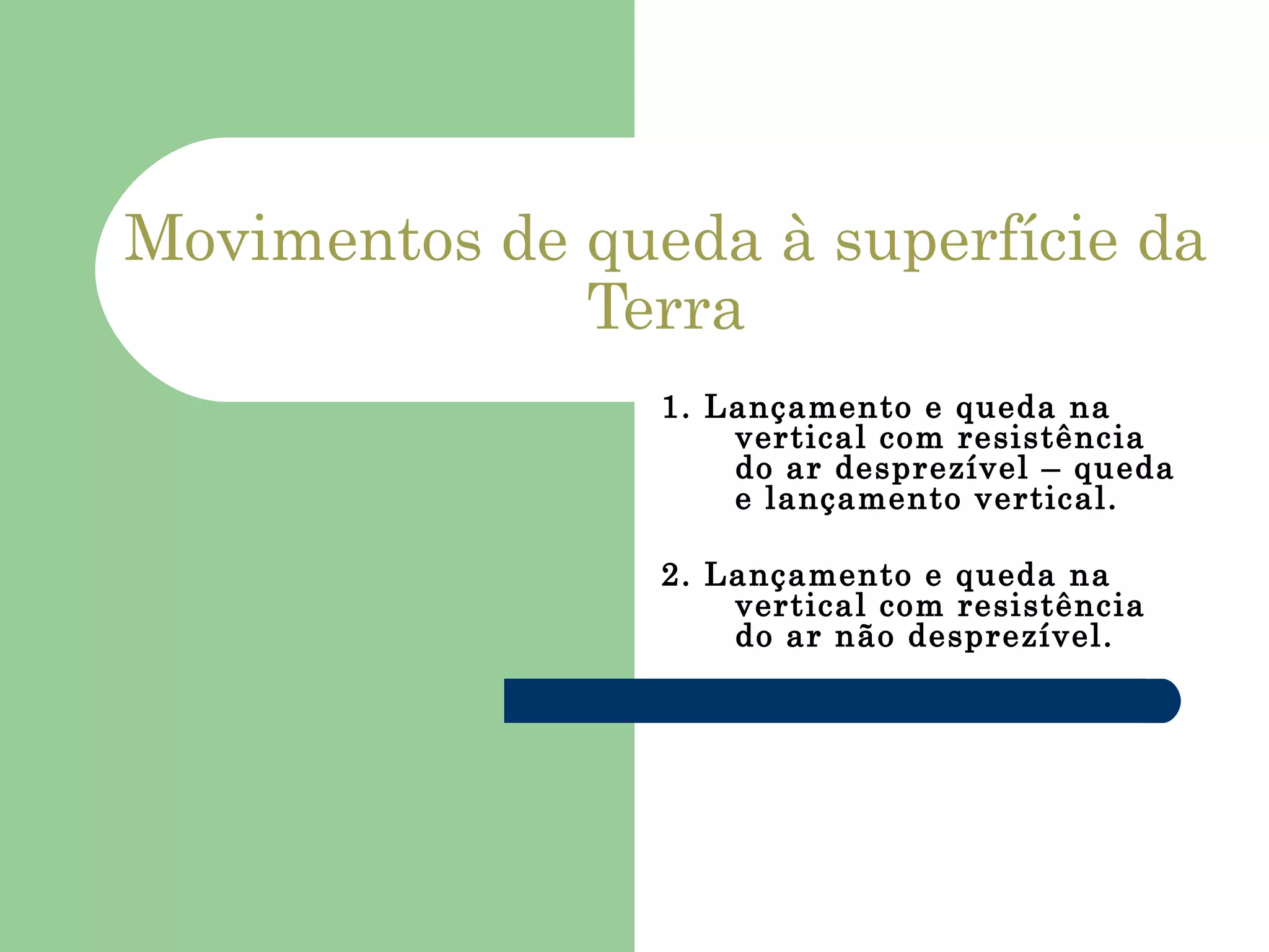 O documento discute diferentes tipos de movimento, incluindo queda livre, lançamento vertical, movimento de projéteis e movimento circular uniforme. Apresenta fatores que influenciam a trajetória de projéteis e equações que descrevem esses movimentos.