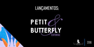 1) O documento apresenta uma lista de lançamentos editorial da editora Butterfly para o mês de março de 2016, incluindo títulos sobre Jesus, espiritismo, fantasia e relacionamento humano-animal.