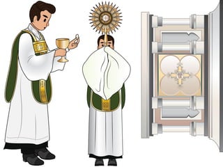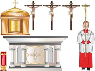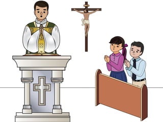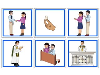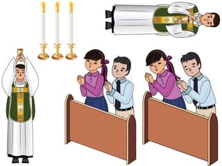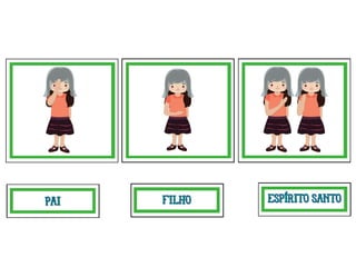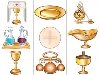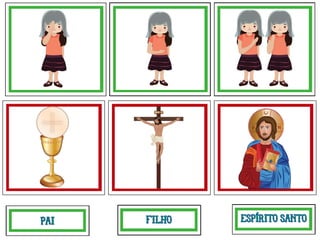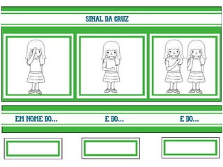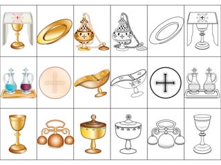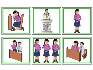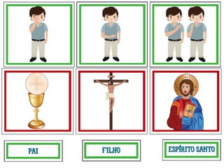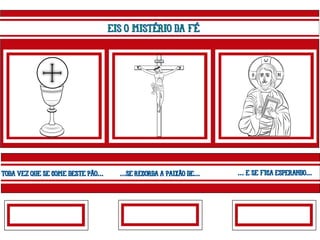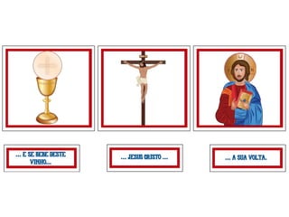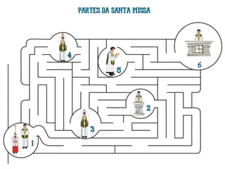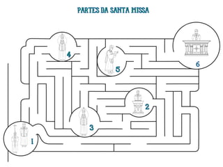 O documento fornece instruções para criar um lapbook intuitivo sobre a missa nova, destacando opções de material para montagem. As partes recortáveis são codificadas por cores para diferentes momentos da liturgia e sugere-se um jogo da memória. O material é gratuito e destinado a fins não lucrativos, com venda proibida.