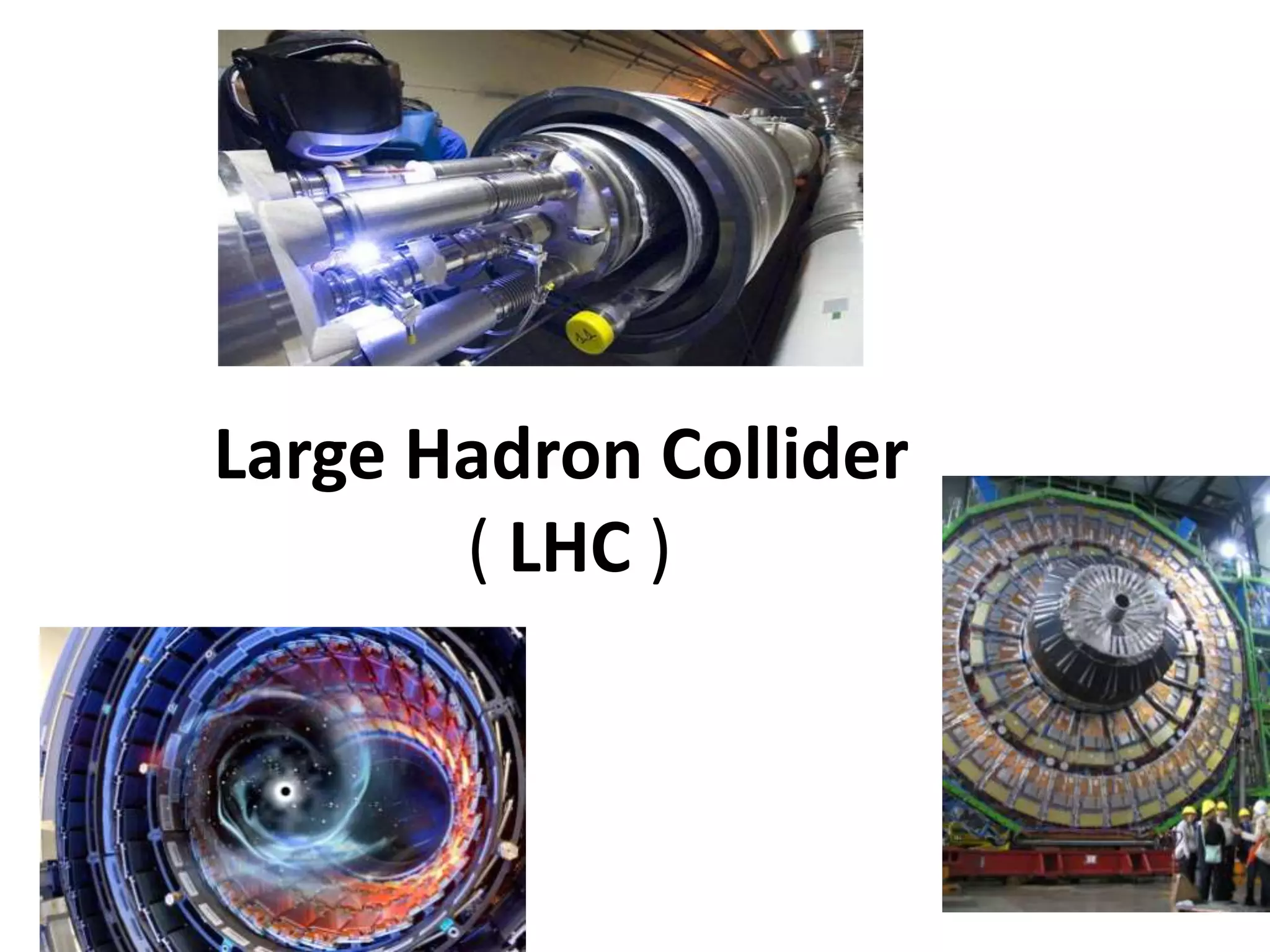 O documento descreve o Grande Acelerador de Hádrons (LHC) no CERN, o maior e mais energético colisor de partículas do mundo. O LHC tem como objetivo estudar colisões de prótons e chumbo a alta energia para entender melhor a origem da massa e encontrar novas partículas. Ele está localizado em um túnel de 27km sob a fronteira franco-suíça e usa ímãs supercondutores para acelerar feixes a quase a velocidade da luz antes da colisão.