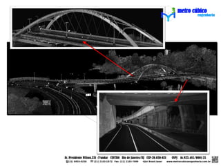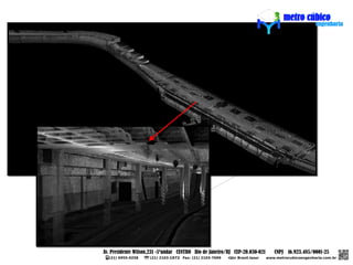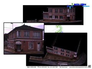 O documento descreve uma tecnologia de digitalização a laser móvel para coleta de dados em larga escala. Ele fornece detalhes sobre os componentes do sistema, como sensores laser, câmeras, sistemas de posicionamento e armazenamento de dados. O documento também explica como o sistema funciona e lista aplicações como mapeamento de minas, infraestrutura, transporte e patrimônio cultural.