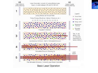 O documento descreve as diferenças entre LASER e luz comum, detalhando que o LASER emite luz monocromática, colimada e coerente, ao contrário da luz comum. Também discute os comprimentos de onda emitidos por diferentes LASERs, sua absorção nos tecidos, efeitos fisiológicos, indicações terapêuticas e contraindicações de uso.