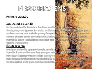 1) O documento apresenta uma árvore genealógica da família Buendía, descrevendo as gerações e personagens principais do romance Cem Anos de Solidão de Gabriel García Márquez.