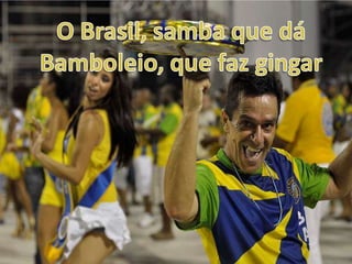 A canção celebra a beleza e a cultura do Brasil, descrevendo aspectos como a diversidade racial, danças como o samba e o congado, a paisagem com coqueiros e fontes, e afirmando o amor do autor pelo seu "Brasil brasileiro".