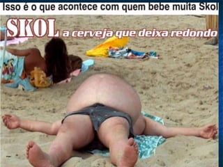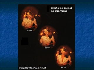 O documento fornece dados estatísticos sobre o consumo de álcool no mundo e seus efeitos na saúde. Apresenta os efeitos bifásicos do álcool, suas implicações para a saúde como causar câncer e cirrose, e relaciona o abuso de álcool a crimes, acidentes e mortes. Fornece dicas para reduzir danos do consumo e sinais de problemas, e sugere atividades para quem deseja parar de beber.