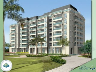 O documento descreve o empreendimento residencial Le Parc, localizado na Barra da Tijuca, Rio de Janeiro. O projeto oferece apartamentos de 2, 3 e 4 quartos para atender diferentes estilos de vida e gerações, com opções de acabamentos. Inclui também um clube completo com diversas áreas de lazer e serviços.