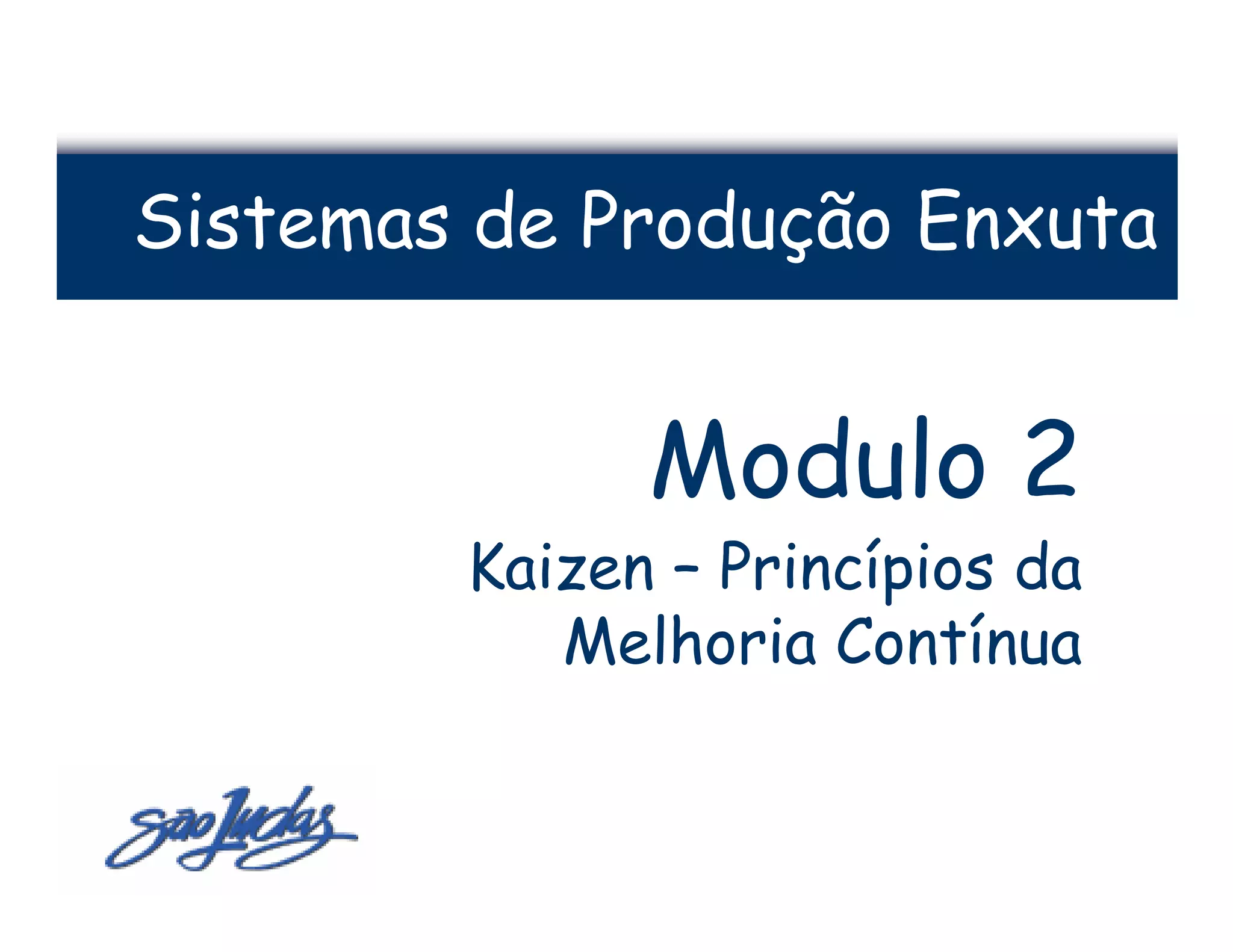 O documento aborda princípios da melhoria contínua no contexto de sistemas de produção enxuta, com foco nas práticas de kaizen, como o programa 5S e planos de sugestões. Apresenta também metodologias como mapeamento do fluxo de valor para identificação de perdas e a importância de uma cultura de melhorias e tomada de decisões eficaz através de gerenciamento visual e indicadores. Além disso, descreve a estrutura de reuniões eficazes para análise e decisões relacionadas a desempenho e objetivos operacionais.
