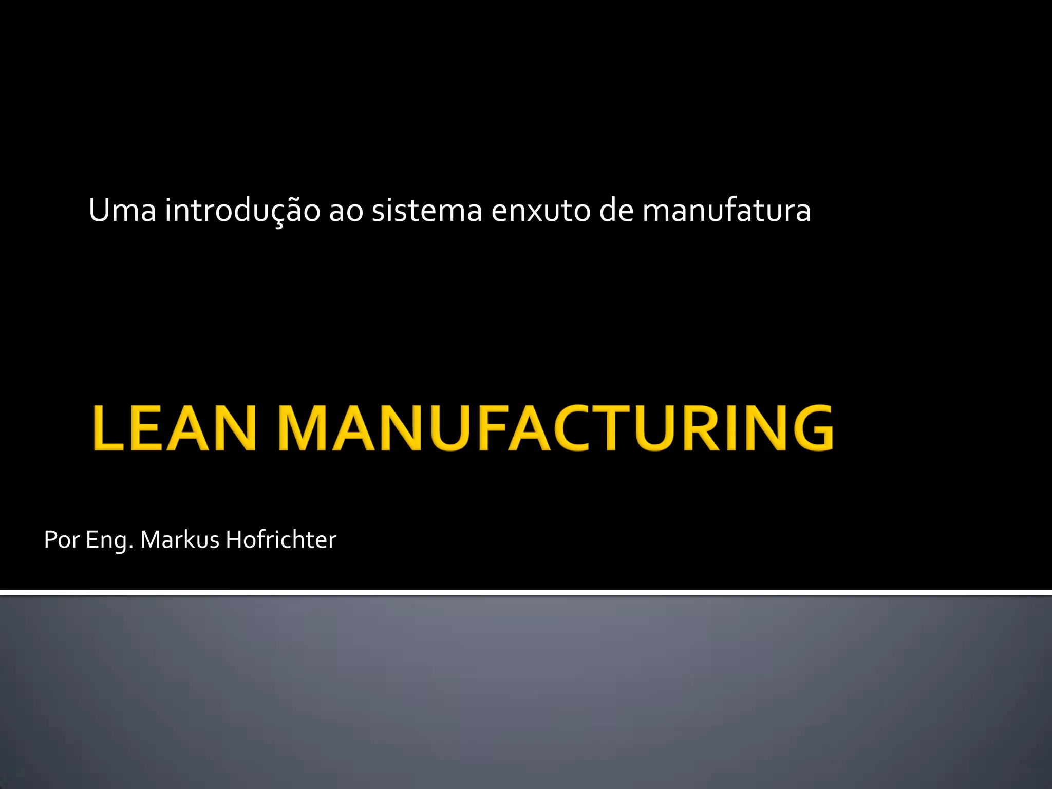 O documento fornece uma introdução ao sistema enxuto de manufatura, descrevendo seu histórico, objetivos, principais ferramentas, importância da mudança cultural e fases de implantação. Ele destaca a eliminação de desperdícios, fluxo de valor contínuo e produção puxada como conceitos centrais do sistema enxuto.