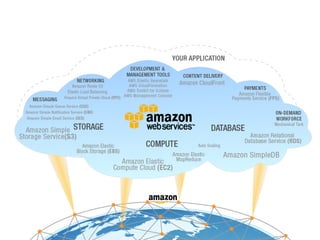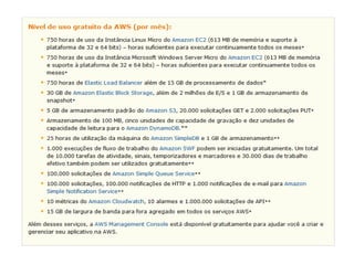 O documento discute como startups podem usar metodologias ágeis como Lean Startup e Cloud Computing para iterar rapidamente e validar ideias de negócio de forma barata. Apresenta como a AWS permite escalar aplicações de forma elástica e pagar apenas pelo que é utilizado, reduzindo custos e riscos para startups.
