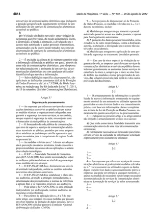 Este documento estabelece regras sobre o tratamento de dados pessoais no setor das comunicações eletrónicas em Portugal. Determina que as entidades formadoras autorizadas têm um ano para obter certificação e são dispensadas de alguns requisitos temporariamente. Também estabelece que as competências do IMT nas regiões autónomas são exercidas pelas respetivas administrações regionais.