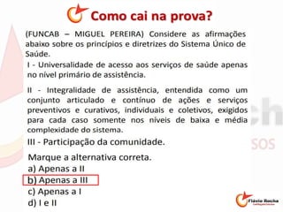 O documento aborda a evolução da legislação do Sistema Único de Saúde (SUS) no Brasil, destacando a Constituição de 1988 como seu marco inicial e as leis orgânicas de saúde de 1990 que regulamentam sua estrutura e funcionamento. A saúde é considerada um direito de todos, e o SUS deve garantir a universalidade, integralidade e equidade no atendimento, envolvendo a participação da comunidade e a integração dos serviços de saúde. Além disso, o texto detalha as diretrizes do SUS e as atribuições de suas instituições, enfatizando a promoção, proteção e recuperação da saúde da população.