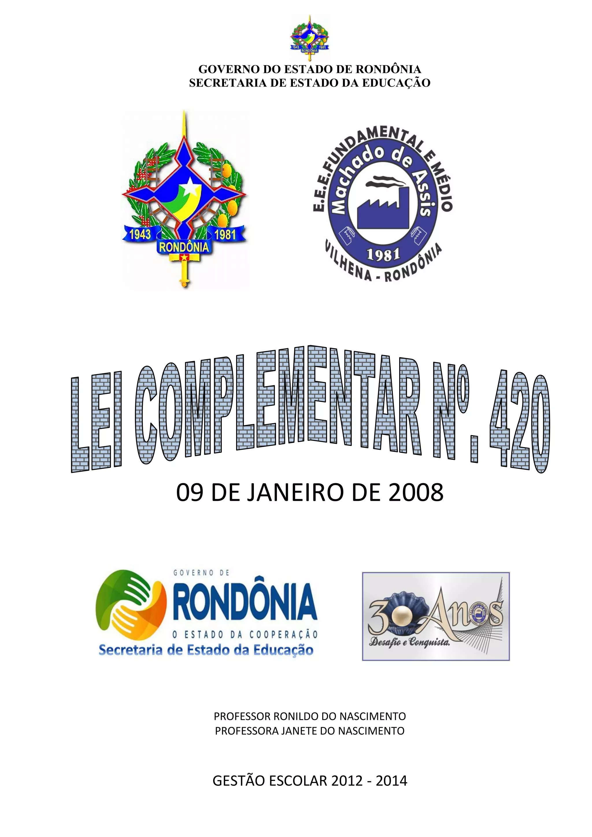 Este documento estabelece o Plano de Carreira, Cargos e Remuneração dos Profissionais da Educação Básica do Estado de Rondônia. Ele define a estrutura da carreira em três cargos (Professor, Psicólogo Educacional e Técnico Administrativo Educacional) com diferentes níveis, e descreve as atividades específicas de cada cargo.