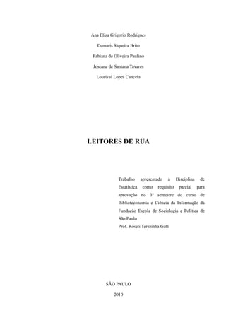 O documento analisa o acesso e a relação de pessoas em situação de rua com bibliotecas, focando na biblioteca do albergue Arsenal da Esperança em São Paulo. A pesquisa revela dados demográficos e sociais dos usuários e busca ressaltar a importância da leitura para a reinserção social desses indivíduos. O trabalho é fundamentado em estudos anteriores e visa incentivar a criação de mais bibliotecas focadas na população em situação de vulnerabilidade.