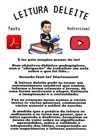 Leitura deleite ler pelo simples prazer de ler neste pdf tem livros em texto ou contação em vídeo você escolhe