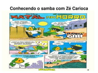 O texto descreve Zé Carioca morando no Sítio do Morro Sobrado com seu melhor amigo Nestor Pedrão. Zé planeja usar sua esperteza para dar presentes de Natal sem gastar dinheiro, entendendo que o mais importante é a intenção, não o valor do presente. O texto é um quadrinho que apresenta Zé Carioca e aspectos da cultura brasileira como o samba.