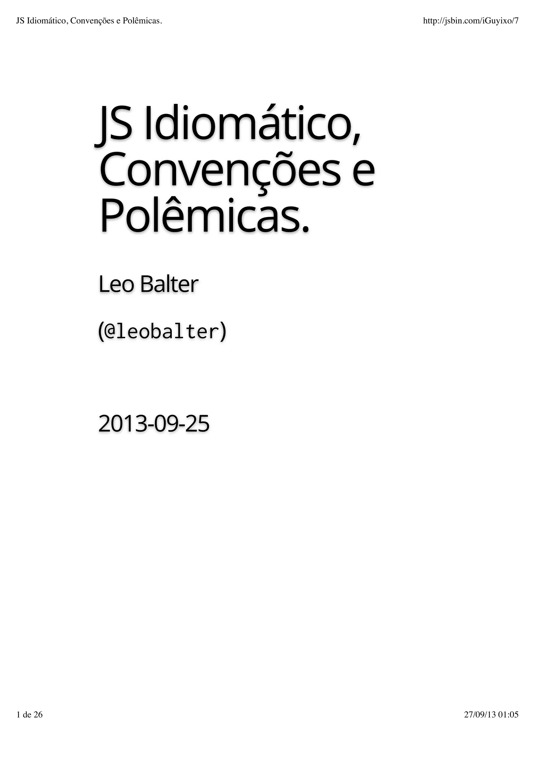 JS Idiomático, Convenções e Polêmicas. http://jsbin.com/iGuyixo/7